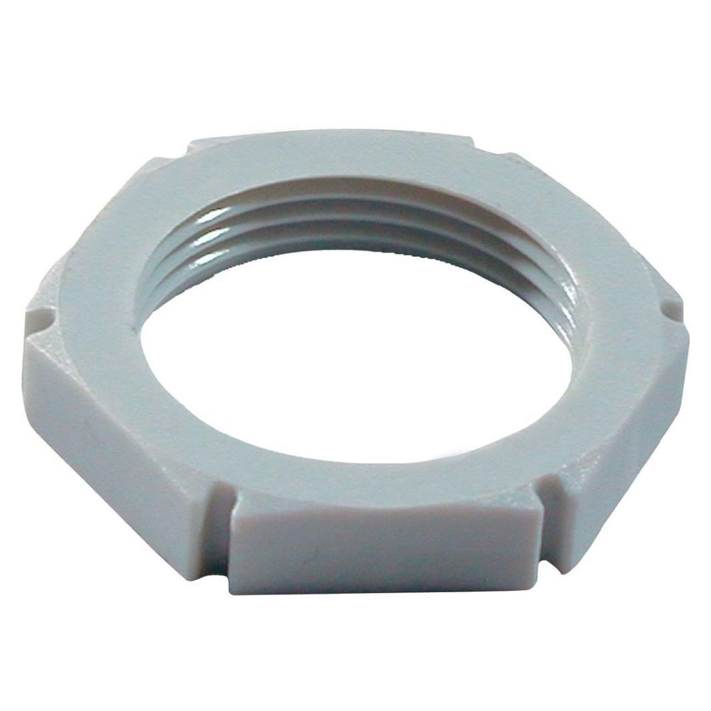 Гайка с метрической резьбой, изготовленная из полиамида. Пластиковые крепления используют на конструкциях которые не подразумевают высокой нагруженности и там где нельзя применить крепление из металлов, например при соединении хрупких элементов из стекла или керамики. Пластик не вызывает коррозии металлов, не электропроводен.